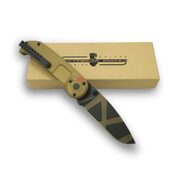 Нож имеет удобную рукоятку и оснащен надежным замком обеспечивающим блокировку клинка от случайного складывания.
